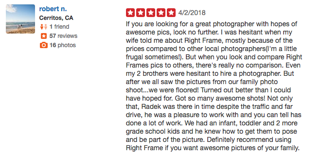 “Right Frame Photography (RFP) is the easiest and most straight forward photography service in Oahu. Ania was very easy to work with and communications was on point constantly back and forth. My family is from California and we were on our babymoon in Aulani so we needed to book a photographer for maternity pictures before we got there. Ania helped us pick the most perfect spot for maternity pictures in Ko’Olina. It was actually walking distance for us. The packages were comparable to the 3 other photography services that we emailed but the pictures on her website were radiant & stunning. If you think the pictures on her website are only for show you are WRONG!! I strongly believe our pictures came out to be even better. Our photographer was Radek and he did an amazing job. We brought our 2 year old son with us and Radek new how to capture his attention and make him smile. When we come back to the island and we definitely will especially with our new addition to our family there wouldn’t be anyone else we would trust our memories to than RFP. Thank you!!”